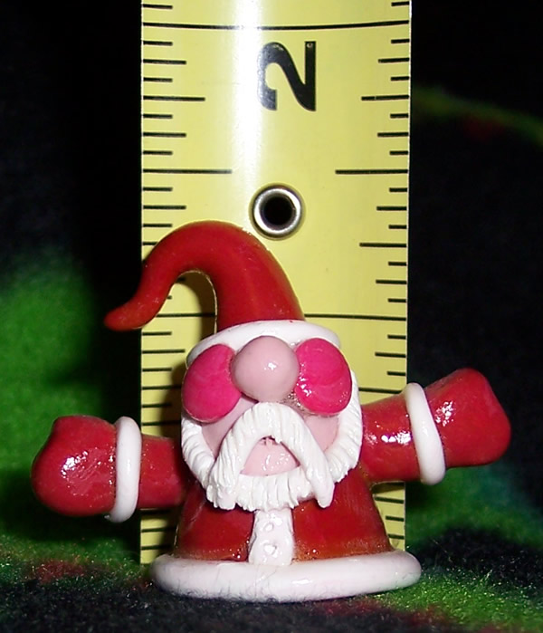 Each Santa is handmade so size and style may vary slightly, but general size is between 1" and 1 1/4" high and 1 1/4" to 1 1/2" wide.